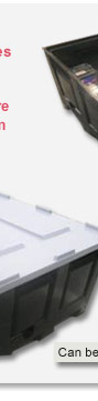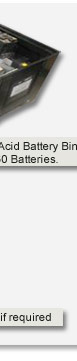 - “Bunded” purpose made battery bins, supplied with lid if needed.